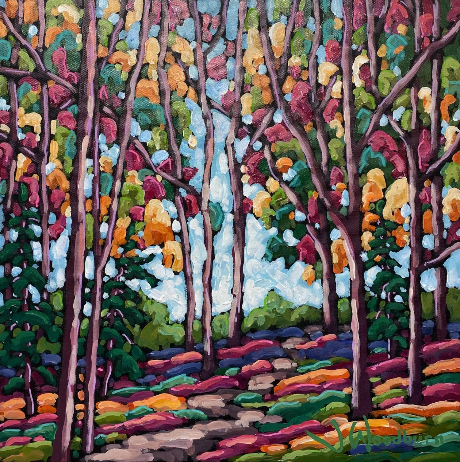 Path to Autumn 16"x16" Acrylic on Canvas, Cloud Gallery $450