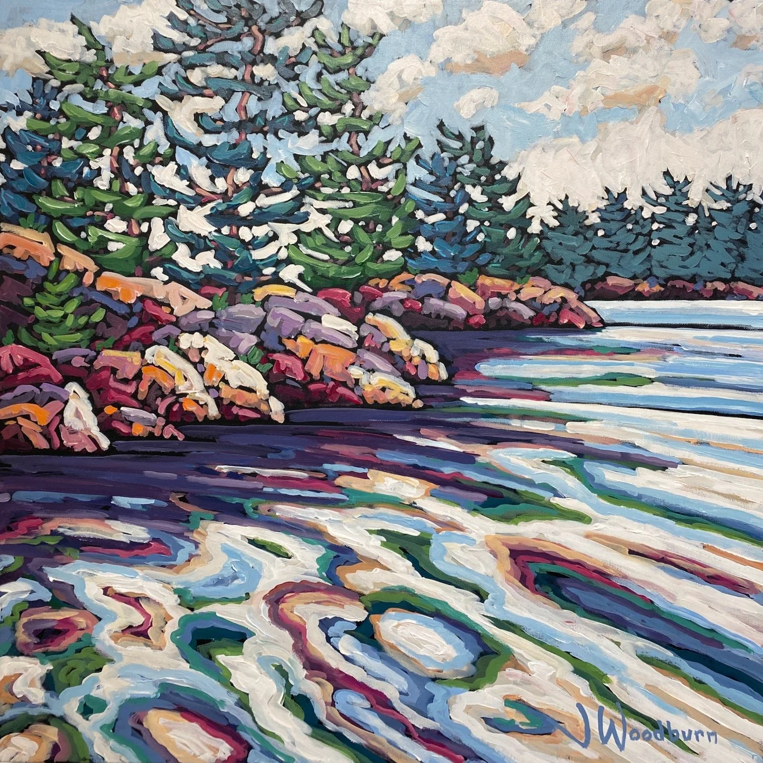 Rocks on the Shore 16"x16" Acrylic on Canvas, Loft Gallery $450