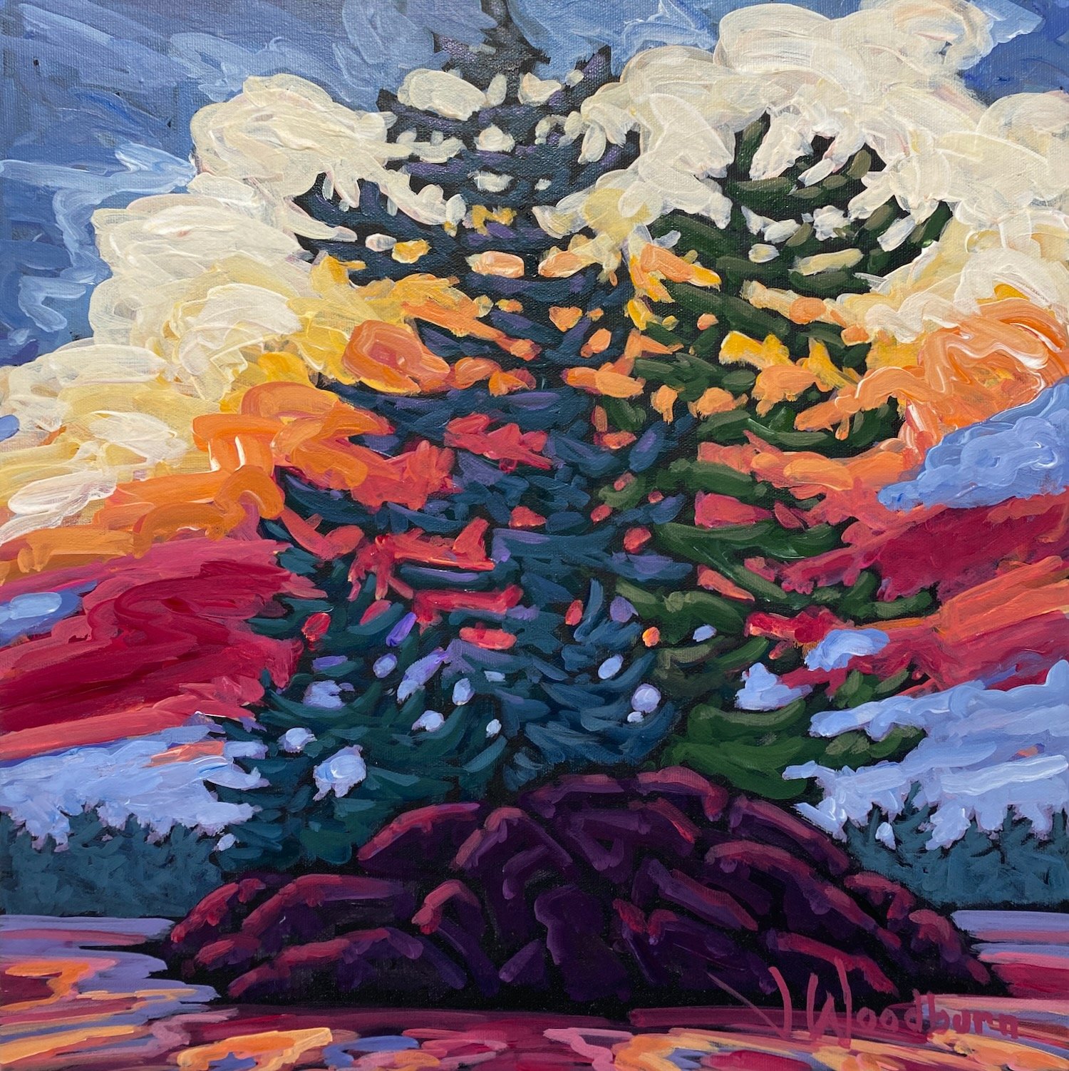 Towering Pine 16"x16" Acrylic on Canvas, Cloud Gallery $450