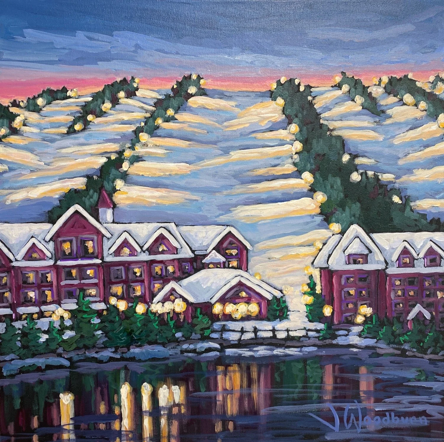 Wedded to the Woods 24"x18" Acrylic on Canvas, Scandinave Spa $750